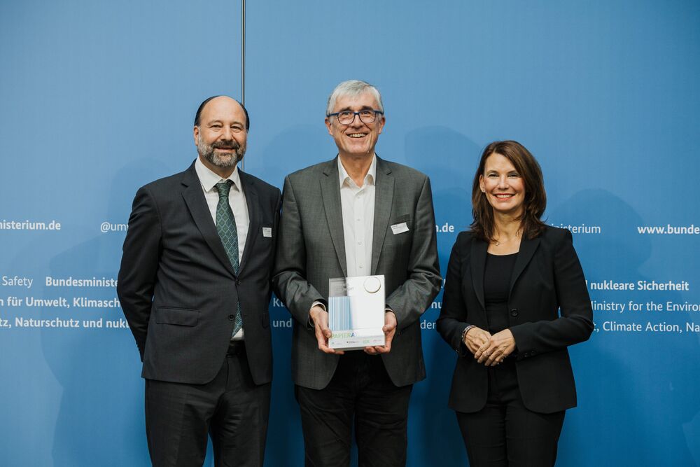 Landkreis Schweinfurt. Die parlamentarische Staatssekretärin Rita Schwarzelühr-Sutter hat heute im Bundesumweltministerium in Berlin den Landkreis Schweinfurt als „Recyclingpapierfreundlichsten Landkreis“ ausgezeichnet. Stellvertretender Landrat Thomas Vizl nahm den Award entgegen für herausragendes Engagement bei der Verwendung von Recyclingpapier mit dem Blauen Engel. Der Landkreis Schweinfurt setzte sich im Papieratlas-Landkreiswettbewerb 2025 der Initiative Pro Recyclingpapier (IPR) an die Spitze. Insgesamt beteiligten sich 91 Landkreise mit Recyclingpapierquoten auf hohem Niveau an dem von der IPR und ihren Partnern veröffentlichten Papieratlas.