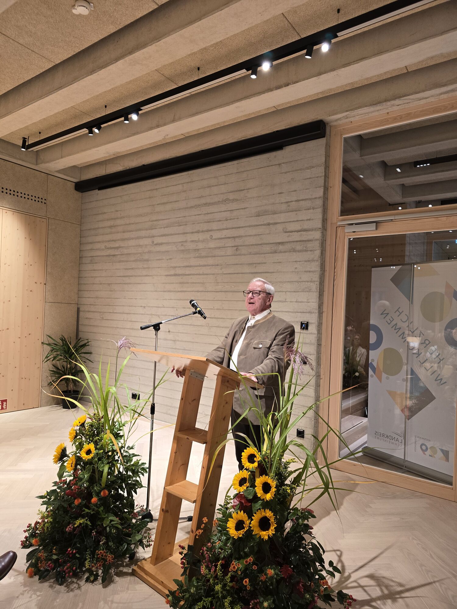 Für den zweiten Beitrag konnte der „kulturelle Tausendsassa“ der Region Hans Driesel gewonnen werden. Vor allem bekannt für seine Verdienste um die Faschingskultur – 26 Jahre lang war er Sitzungspräsident der „Schwarzen Elf“ in Schweinfurt und seit 2000 im Einsatz als künstlerischer Leiter für das Deutsche Fastnachtmuseum in Kitzingen – gilt er auch als wahrer Experte für Literatur, von den Klassikern wie Goethe und Schiller bis hin zu Tucholsky und Brecht. Als „Literaturvermittler“ nahm er die anwesenden Gäste mit auf einen Streifzug durch die fränkische Literaturszene unter dem Titel „Kenner, Könner und ein ‚Renner‘ – Dichter und Gedichte, Geschichte und Geschichten“.