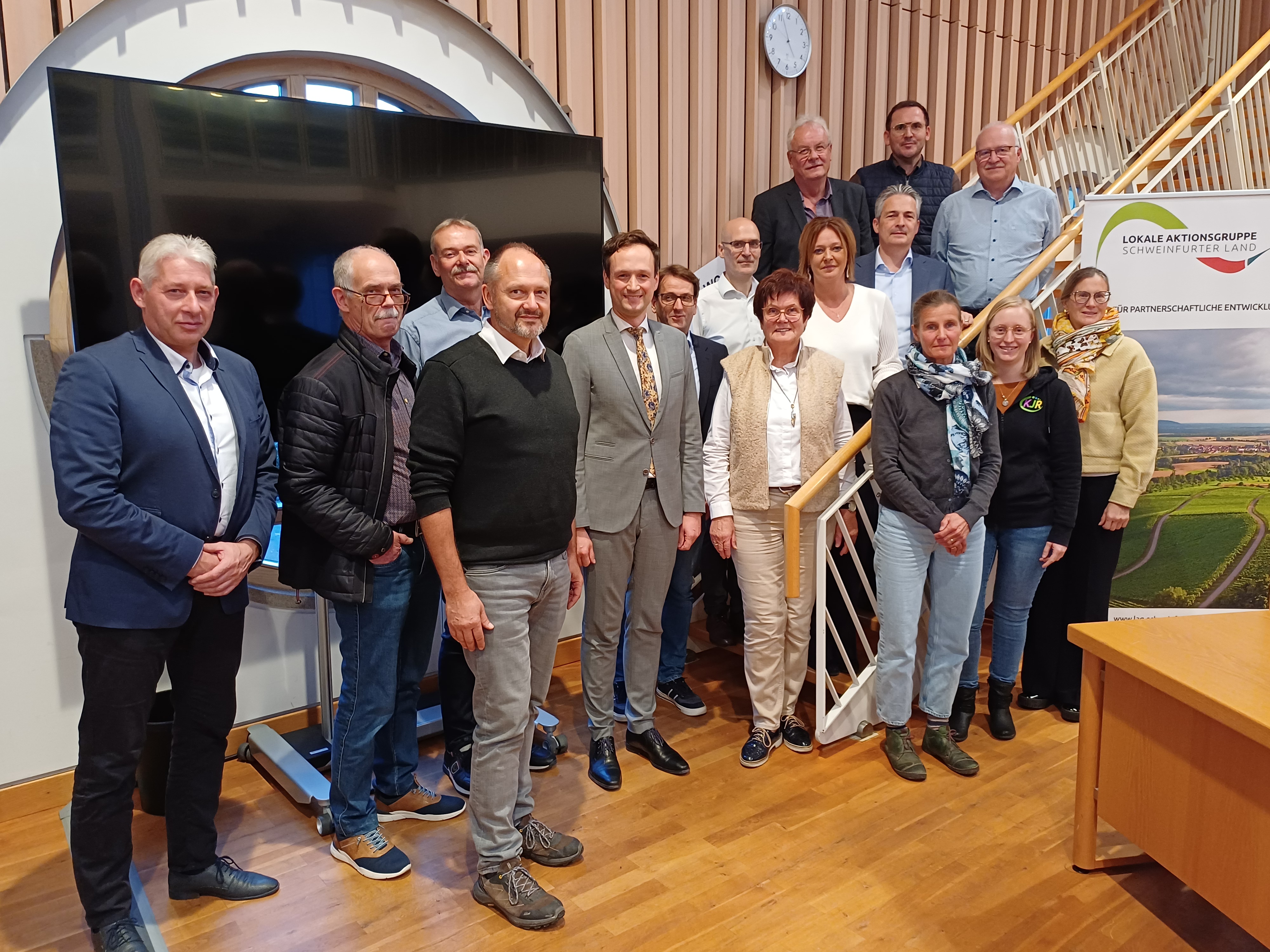 Landkreis Schweinfurt. Im Mittelpunkt der Mitgliederversammlung 2025 der Lokalen Aktionsgruppe Schweinfurter Land – Raum für partnerschaftliche Entwicklung e. V. (LAG) stand neben dem Sachstandsbericht zu den bisherigen Entwicklungen, den LEADER-Projekten und zum Umsetzungsstand der Lokalen Entwicklungsstrategie (LES) die turnusgemäße Neuwahl des Vorstandes für die nächsten drei Jahre. Der Vorstand ist zugleich der Lenkungsausschuss und damit verantwortlich für die Auswahl und Bewilligung von mit LEADER-Mitteln geförderten Projekten. Zahlreiche Vereinsmitglieder waren zur Mitgliederversammlung ins Landratsamt Schweinfurt zusammengekommen.