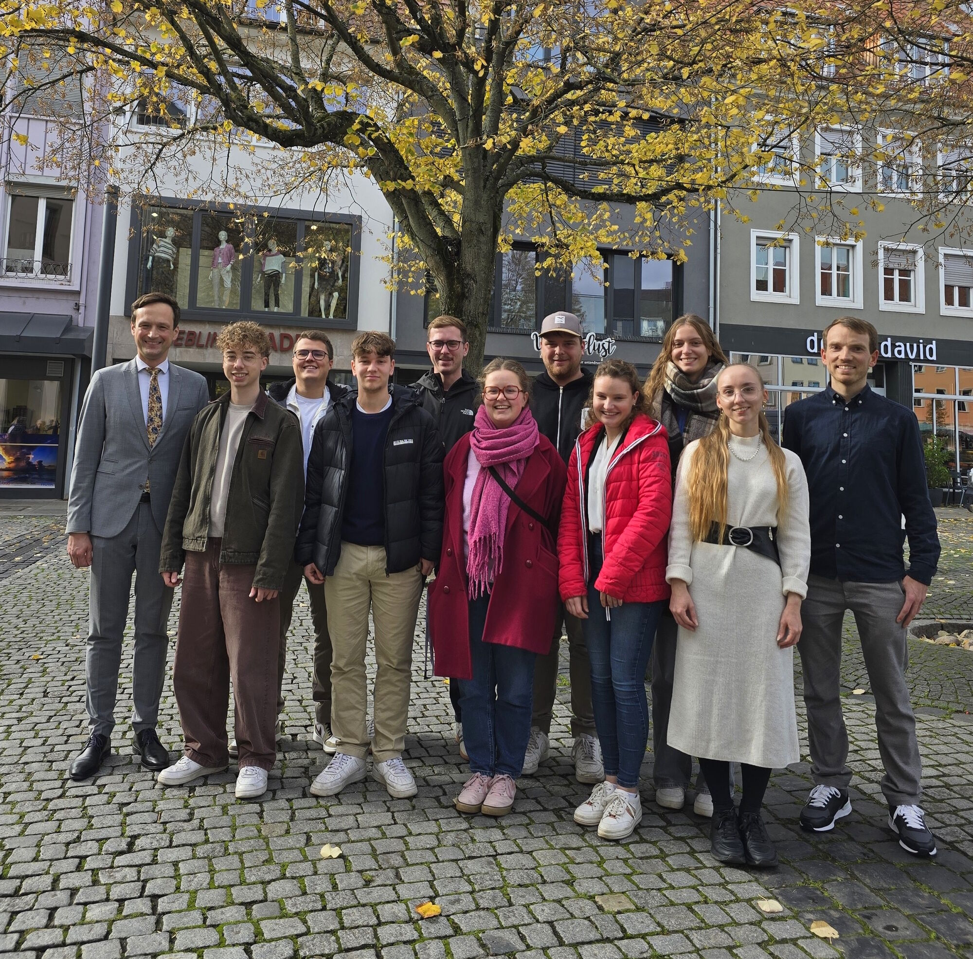 Im Bild, von links, vordere Reihe: Landrat Florian Töpper, Matthias Wirth, Jonas Hachtel, Katharina Schneider, Victoria Klement, Alexa Wüscher (neue Ausbildungsbeauftragte), hintere Reihe: Kai Duda, Noel Wagner, Nico Zimmermann, Lorena Wetterich und Fabian Kamm (Bereich Personal).