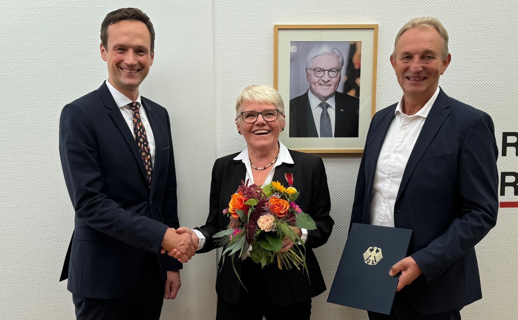 Der Verdienstorden der Bundesrepublik Deutschland wurde 1951 vom damaligen Bundespräsidenten Theodor Heuss als Zeichen der Anerkennung und Wertschätzung für über viele Jahre geleistetes Engagement für die Gesellschaft gestiftet. „Es freut mich außerordentlich, immer wieder auch Menschen aus unserem Landkreis mit dieser Auszeichnung als sichtbares Zeichen des Dankes und der Hochachtung für deren Einsatz im sozialen, karitativen, wirtschaftlichen, geistigen oder politischen Bereich bedenken zu dürfen“, erklärte Landrat Florian Töpper.