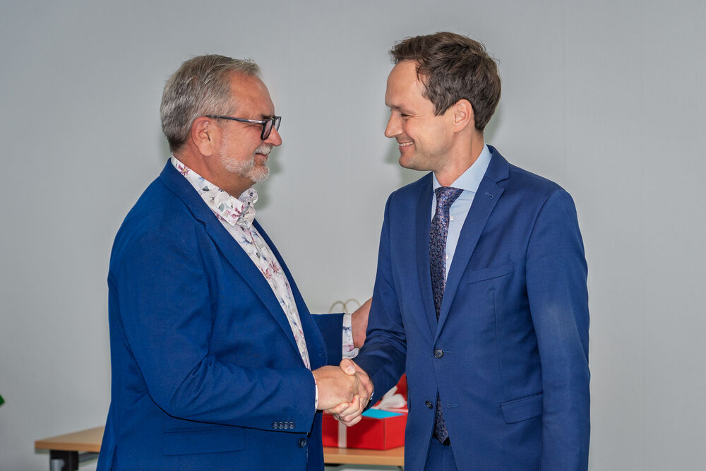 Neben der offiziellen Ansprache von Landrat Töpper hat auch der jetzige Geschäftsführer, Florian Höhn, Schirmer für die Übergabezeit gedankt und ihm für seinen Ruhestand alles Gute und beste Gesundheit gewünscht.