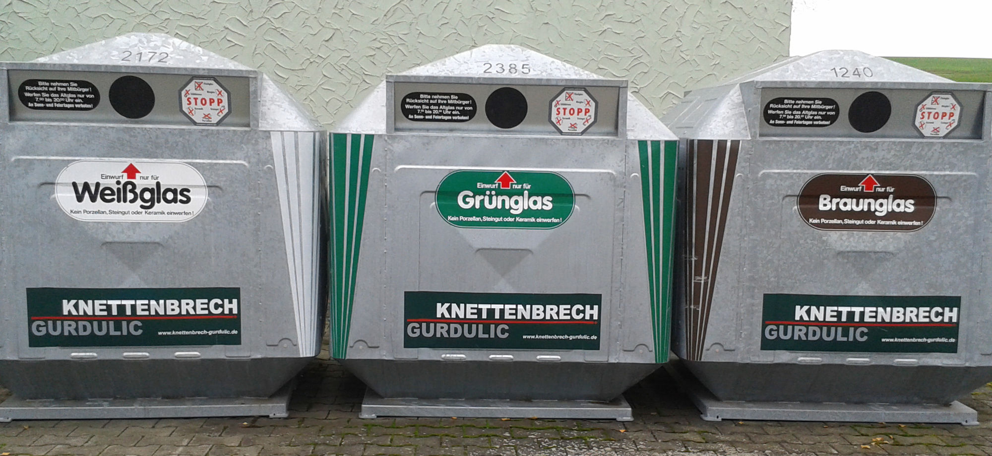 Wichtig ist die Sortierung nach drei Farben: Weiß-, Grün- und Braunglas. Denn die Farben werden getrennt voneinander wieder eingeschmolzen. Andersfarbige Gläser wie z.B. die modischen blauen oder schwarzen Flaschen sollen zum Grünglas gegeben werden - die grünen Farbpigmente überdecken andere Farben am besten.